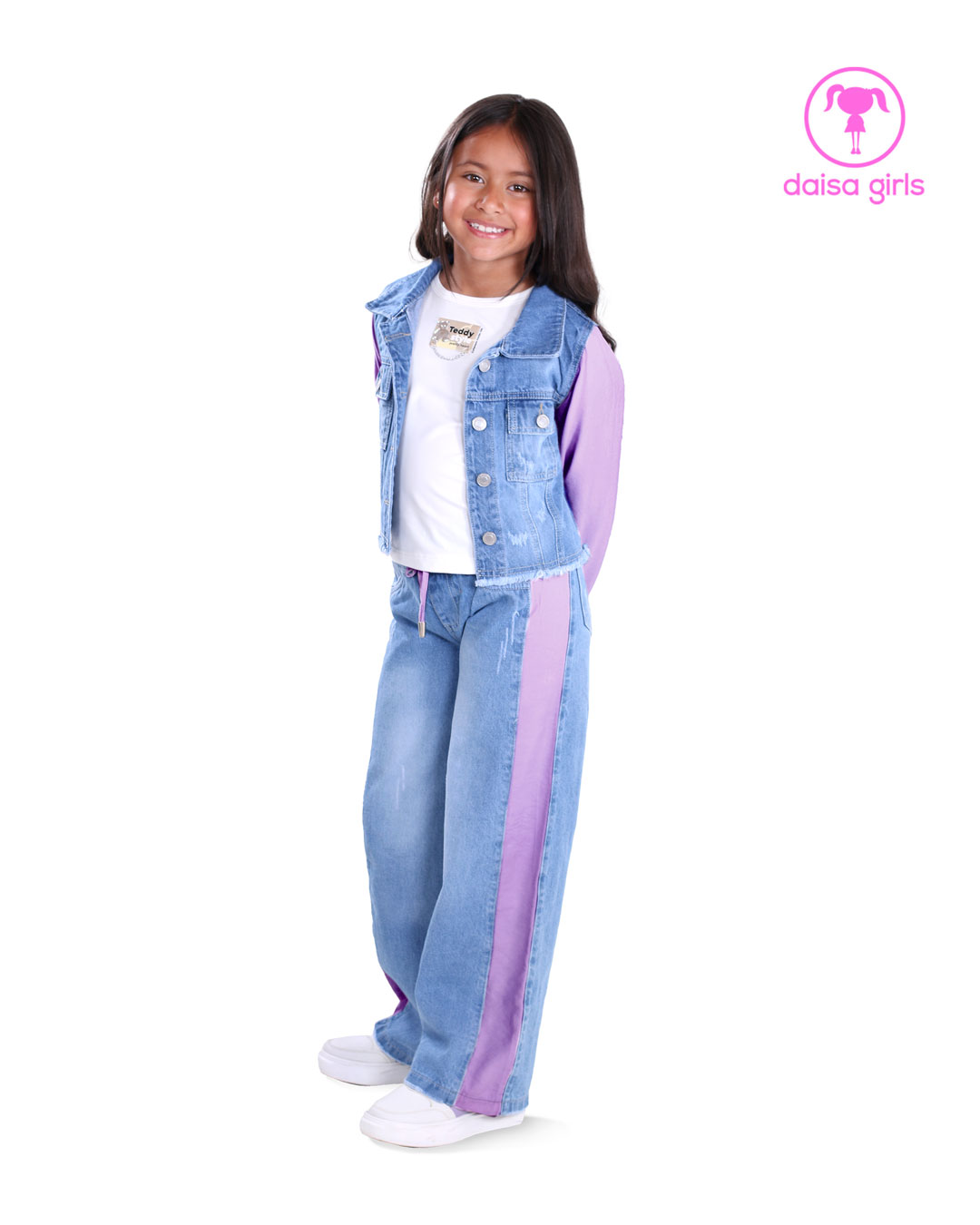 Set jean rígido chaqueta y pantalón+ camisilla